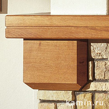 Угловой камин в стиле кантри под закрытую топку, высота цоколя - 38 см. Изготовлен из мрамора Vicentini грубой обработки с плитой из полированного мрамора Trani и дубовой балкой.