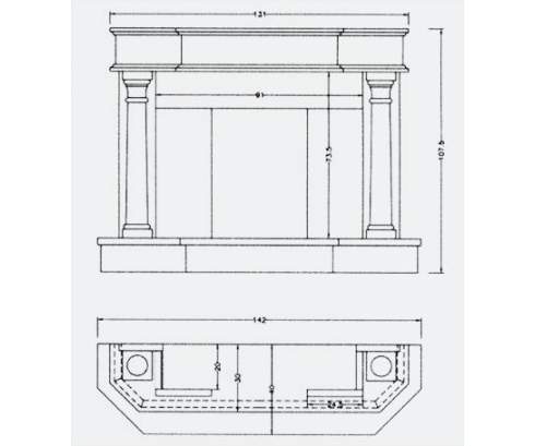 Этот портал привлекает необычным сочетанием мрамора разных цветов. Колонны и верхняя часть фасада этого камина выполнены из кораллового узорчатого мрамора, а пьедестал, передняя часть и обрамление верхней полки - из мрамора нежно-кремового цвета.