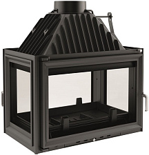 Каминная топка оснащена системой очистки стекла, встроенным шибером и системой подводки внешнего воздуха в камеру сгорания, а также оборудована цепным механизмом подъема двери, съемной колосниковой решеткой и ножками, которые дадут возможность установить топку на неровной поверхности.